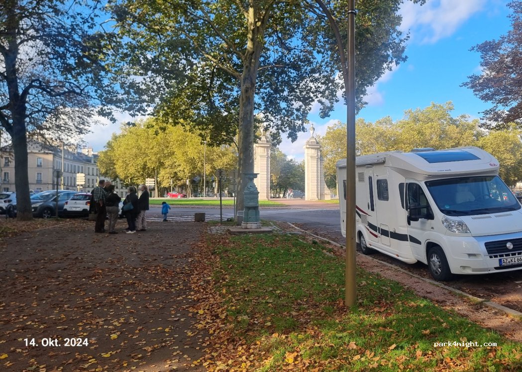 Brilliant stop over for the night in lovely Dijon. Noisy and busy 7am to 10pm but quiet during the night. Pay at meter from 8am to 7pm - 4 euros for 5 hours. Highly recommend!