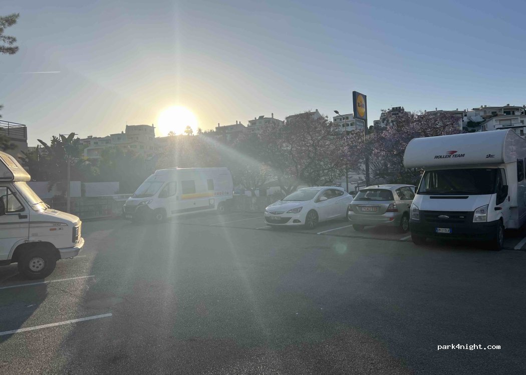 Parking pequeño en frente del Lidl. Las plazas están bastante niveladas y son anchas. Hemos dormido varias AC's y campers. A 15 minutos del centro de Lagos.