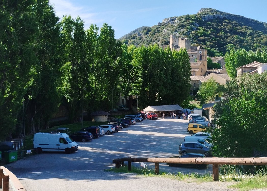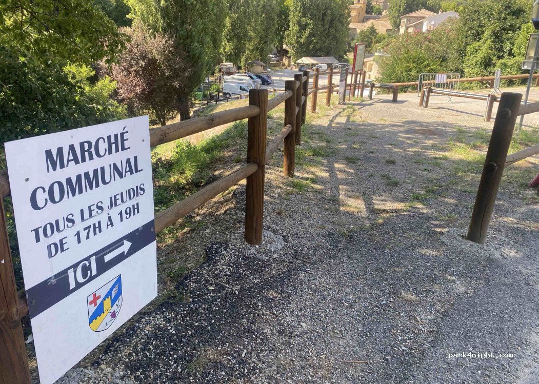 Super parking, au calme avec des sanitaires et un petit ruisseau charmant. Le tout dans un village médiéval qui vaut le détour. Attention le GPS emmène de l'autre côté dans une ruelle où les CC ne passent pas, mais le vrai accès se fait en face de la pharmacie. En bonus : le marché des producteurs le jeudi soir