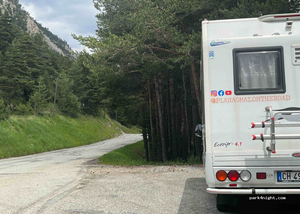 È una semplice piazzola di sosta accanto ad una strada, accanto ad una foresta. Ci sono un paio di sentieri che partono proprio da qui, da fare a piedi o in MTB. Nessun segnale di divieto. Siamo arrivati alle 2 di pomeriggio e ci siamo fermati per la notte. Tranquillità garantita pur essendo accanto alla strada, saranno passate 20 auto in tutto. La notte ne sarà passata si e no una. Consigliato.