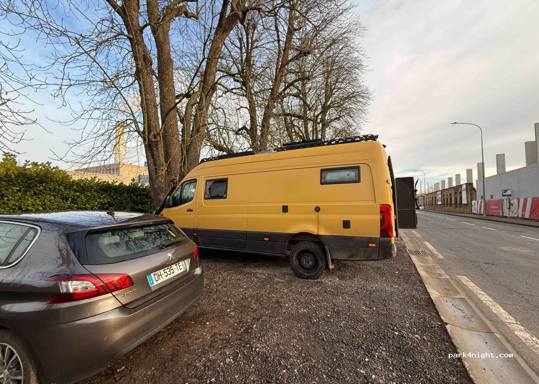 parking de jour qui a l'air un peu lugubre, mais le véhicule est resté toute la journée sans problème. très proche de la ville. on est pas restés dormir