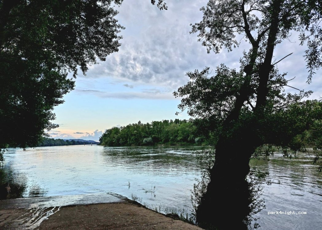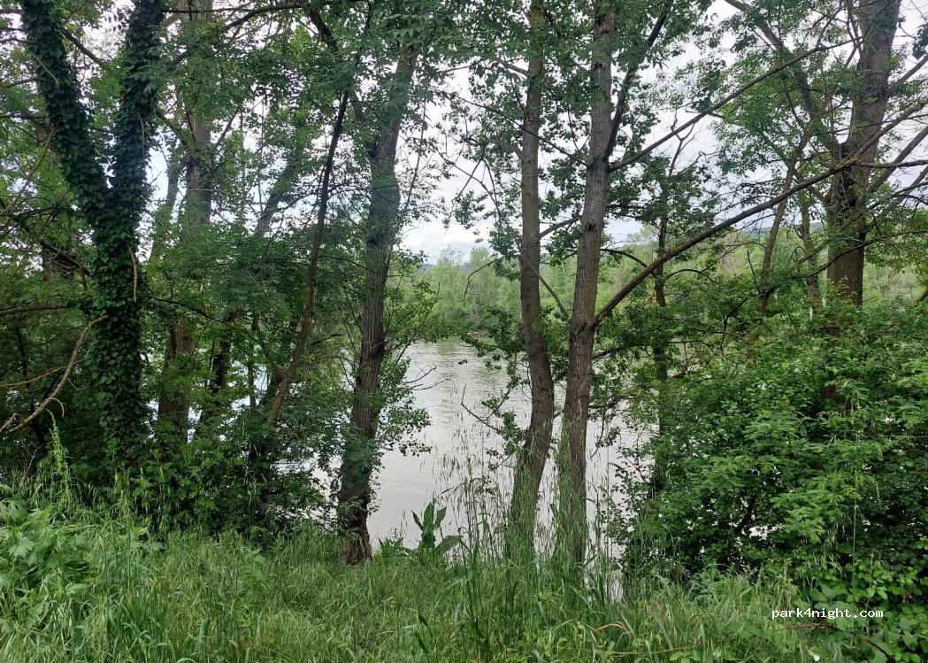 Mooie plaats voor een nacht langs de Rhône. Wandelpad langs de rivier. Geen voorzieningen. Op zaterdagavond eventjes verzamelpunt voor jongeren maar geen last van gehad.