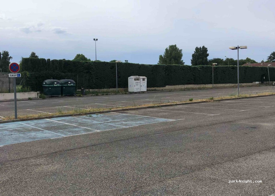 Grand parking du stade pas de bruit bien pour passer la nuit je recommande en semaine personne