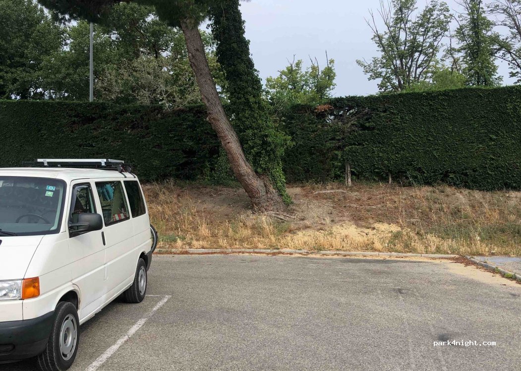 Beau et grand parking pour visiter Avignon 20min en vélo. N'avons pas dormi mais rien ne l'interdit.