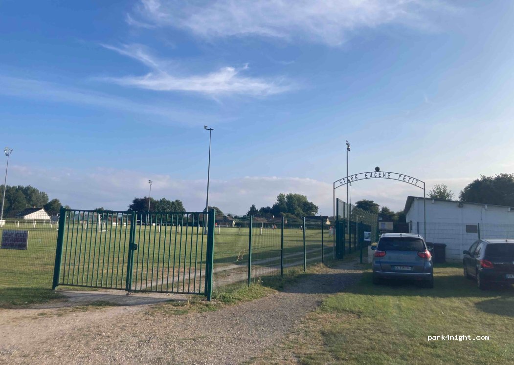 Very spacious parking, quiet in front of the municipal stadium. However, be careful on training days. We spent a quiet night there without being disturbed. Little traffic. Ideal for a night on the road.