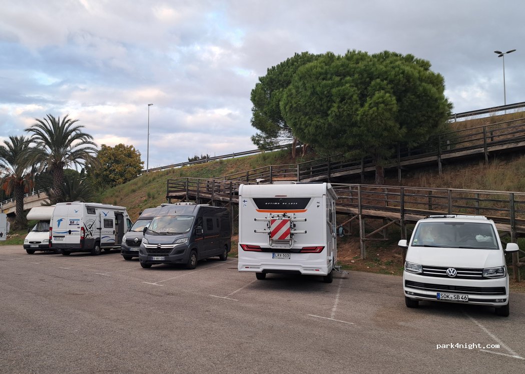 Pernoctamos junto otras campers y autocaravanas. Un pelin de ruido al principio por los jóvenes, pero después noche tranquila y agradable. Cerca mc Donald’s, gasolinera y Carrefour. A dos minutos la playa.