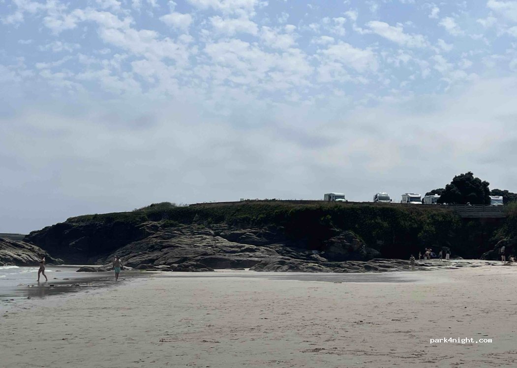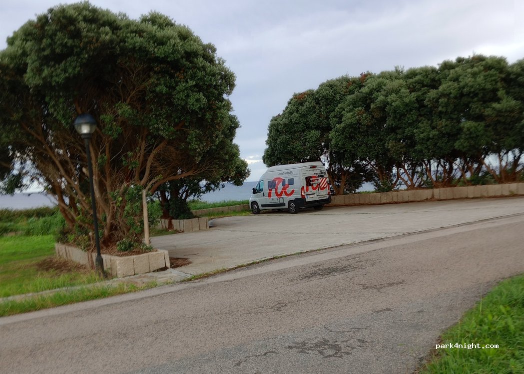 You can stand here right at the ocean with sea view and a private beach with surveillance. Picknick with lots of tables is right next to it. Probably not allowed to stay over night but there are lots of campers here so it might be tolerated. Little beach bar is also here with okay prices and alternatively a cheap camping only 100m far.