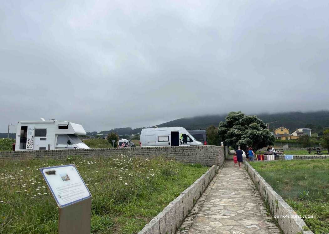 On y a passé une nuit avec 3 autres camping-Cars. Facile d'accès, tranquille, juste au bord de la plage, piste cyclable pour aller à Foz (4 km). vraiment top.