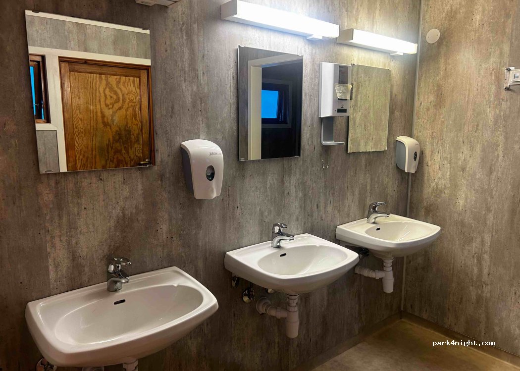 Nettes Personal, mehrere Stellplätze, Sanitär und Küche einfach und gepflegt, für uns für eine Nacht ok.