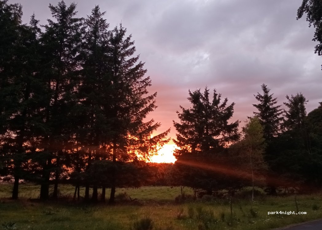 Lieu au bord d’une route peu passagère au pied d’une forêt. Ombre le matin jusqu’à 9h00. Magnifique couché de soleil