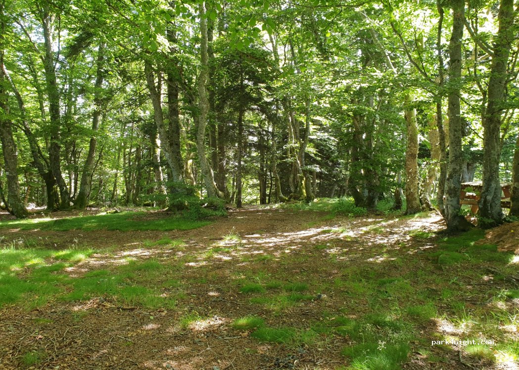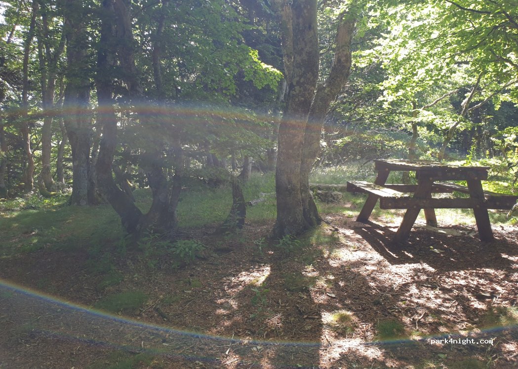 Nous nous sommes installés sous les arbres, une jolie hêtraie. Nous avions la compagnie d'autres vans mais nous avions largement d'espace pour être tranquille. très belle nuit !
