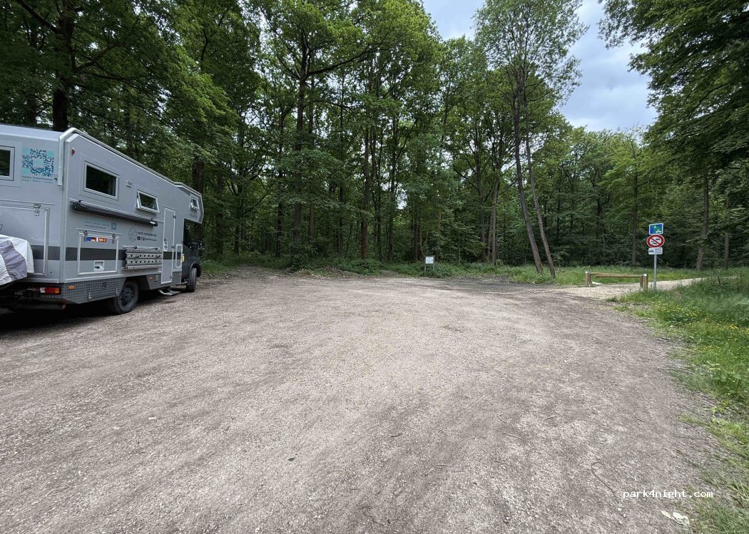 Très bon spot pour passer la nuit. Proche d'un hôtel/salle de conférences, mais nous n'avons pas trouvé cela gênant, l'emplacement est relativement à l'abri des regards en lisière de forêt. Très calme ! Je recommande :)