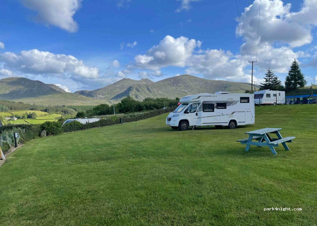 Stayed here loads of time!!! Absolutely brilliant site. very clean. Very quiet. £23 a night including electric . £1 For shower. can walk into Tullymore and the mourns from here that's why we love it so much!! view's are amazing!!
