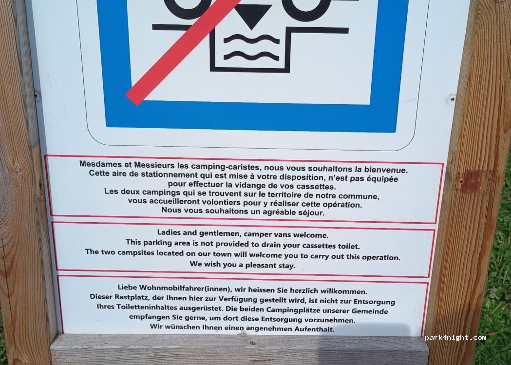 Un panneau indique que le stationnement des camping-cars est autorisé mais pas les vidanges. Il faut traverser le parking du casino (interdit aux camping-cars) et aller au bout de la rue. C'est très calme.