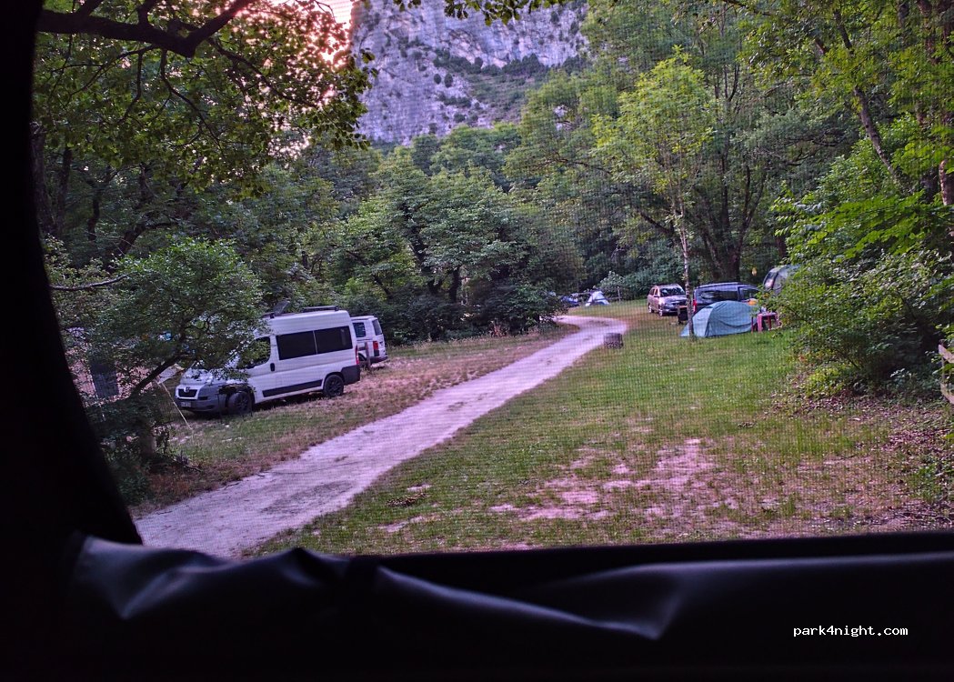 Petit camping nature au pied de la forêt de Saou et proche du village, du torrent et des départs de rando, plus adaptés aux petits CC, vans et tentes . bon accueil pour nous et sanitaires corrects, guinguette pour le soir. Calme et ombragé, grand emplacement avec électricité 30 euros la nuitée pour 3 personnes et van.