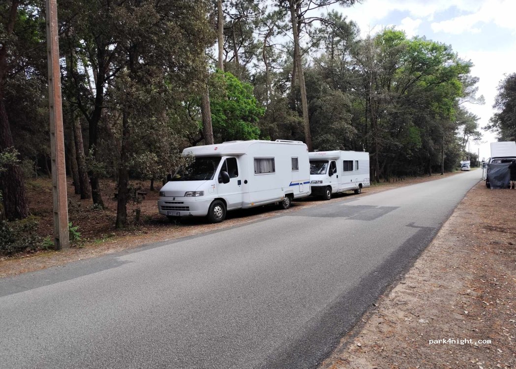 Endroit fort agréable ! Belles promenades à faire ds les bois ou sur les plages ! Pas très loin des sables d’Olonne. Malgré le vent et la pluie nous sommes restés 3 nuits ! Surfeur, promeneur, mais pas trop de monde ! Et c’est propre !!!! Malgré tout une poubelle serait bienvenue !!!! Pas d’interdiction ! Une aire pas très loin avec services ! Merci de préserver ce lieu !