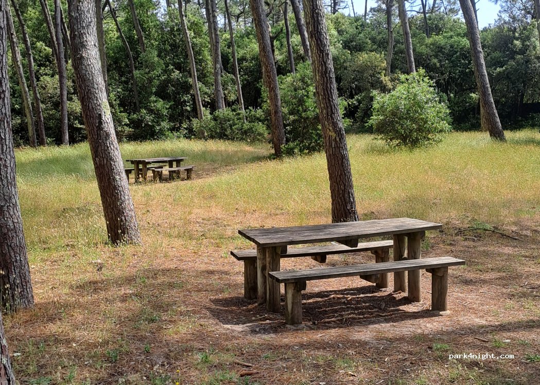 Superbe endroit pour passer la journée, de noibreuses tables sous les pins, bien espacées les une des autres, facile de se stationner, Van, CC. Il y a des poubelles, mais dommage pas de WC. Plage pour pêcher avec galles, possibilité de faire des ballades en forêt. Endroit fréquenté mais malgré tout calme.