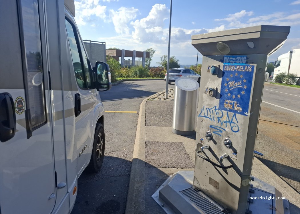 Borne sans eaux l'hiver. vidange possible mais amis camping-cariste, respecté les bornes(vidange wc côté eaux usée par dessus la grille) autrement elles vont nous être fermé...