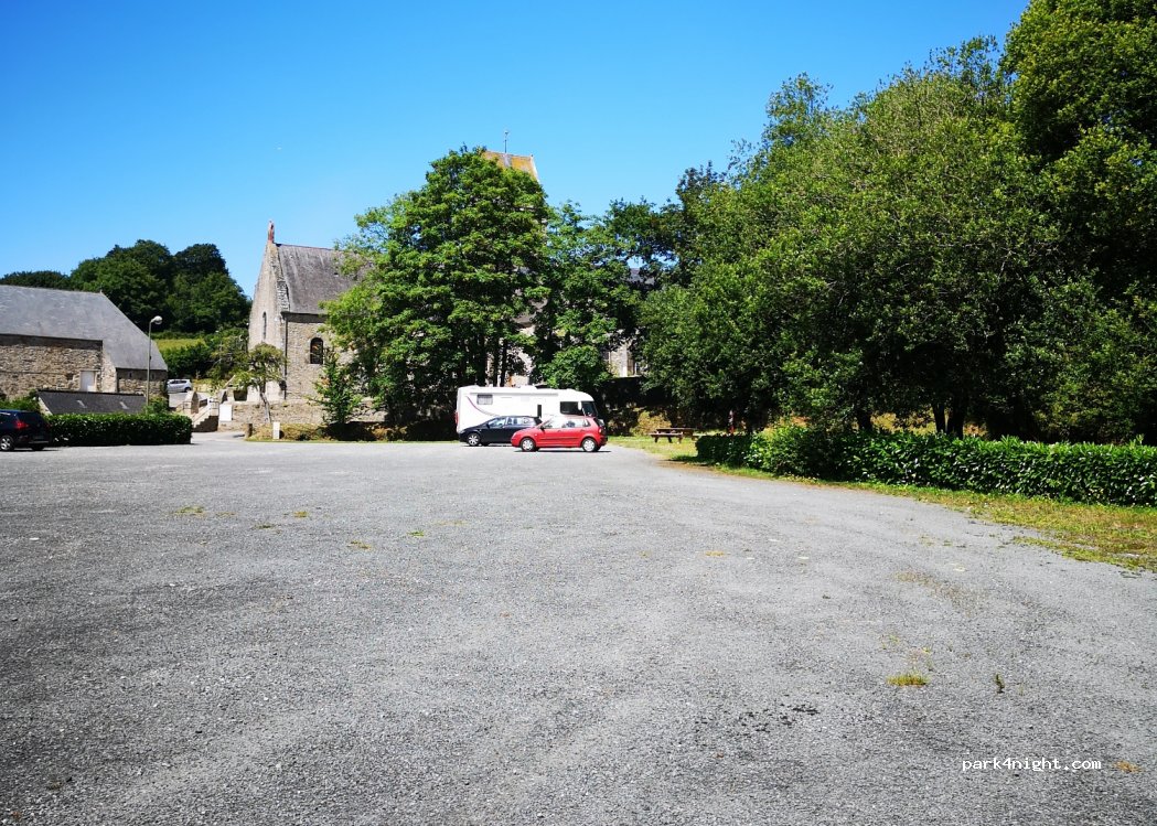 Grand parking. Nuit très calme. Réveil avec le chant des oiseaux et les cloches de l'église qui sonnent à partir de 7h du matin. Possibilité de se mettre à l'ombre le matin. Toilette avec robinet juste à côté. Cadre magnifique avec vue sur le château et l'église.