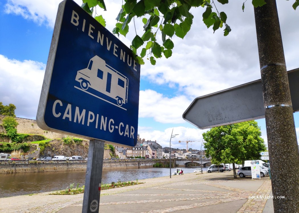 Parfait pour la nuit avec des cales. Près de la Mayenne et vue sur les remparts. Proche centre, juste le pont à traverser. Bruyant à partir de 7 h 00 du mat mais on ne peut pas tout avoir (la vue et la gratuite c'est déjà top). Merci pour cet emplacement.