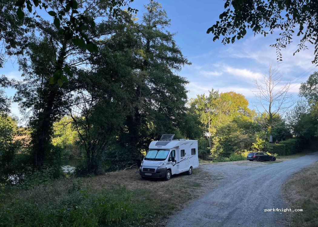 Endroit calme, vue sur la rivière Vendée. Aucun service (laissons cet endroit propre). Route avec de gros trous. Bonne 4G.