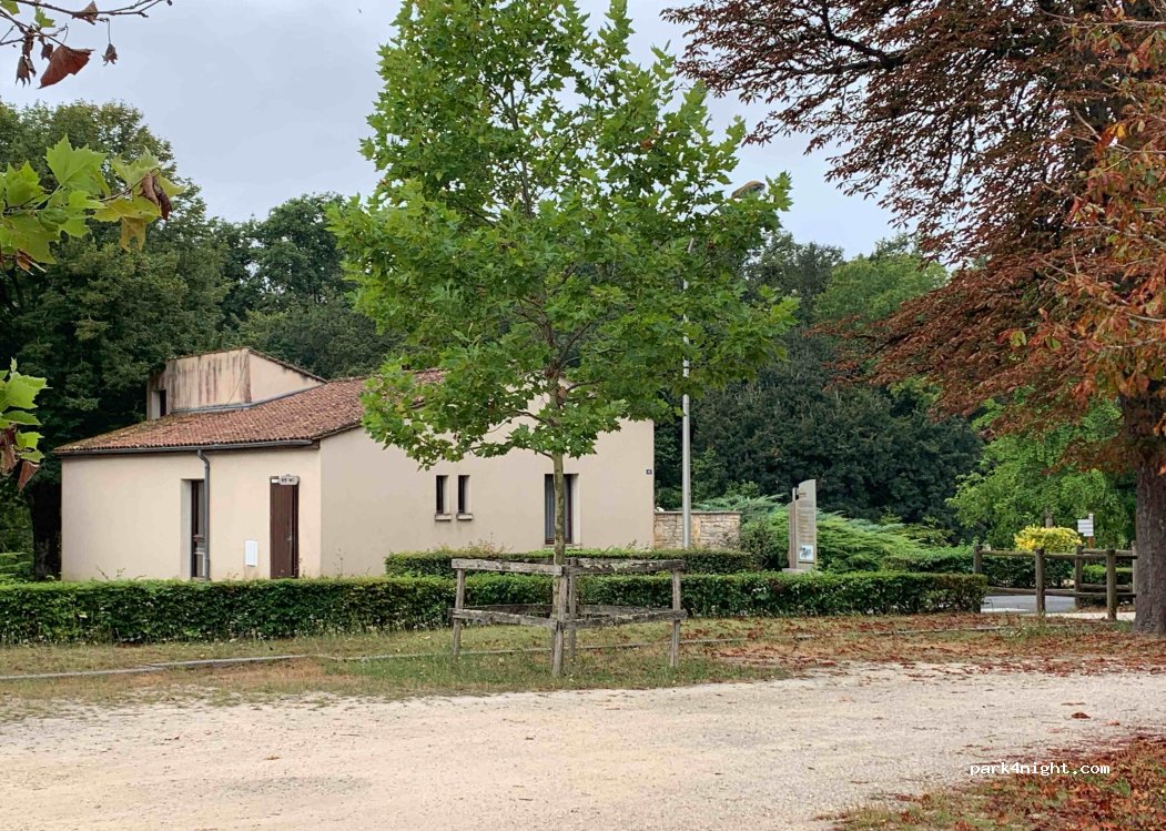 Nombreux emplacements sous les arbres, toilettes publiques sur place.