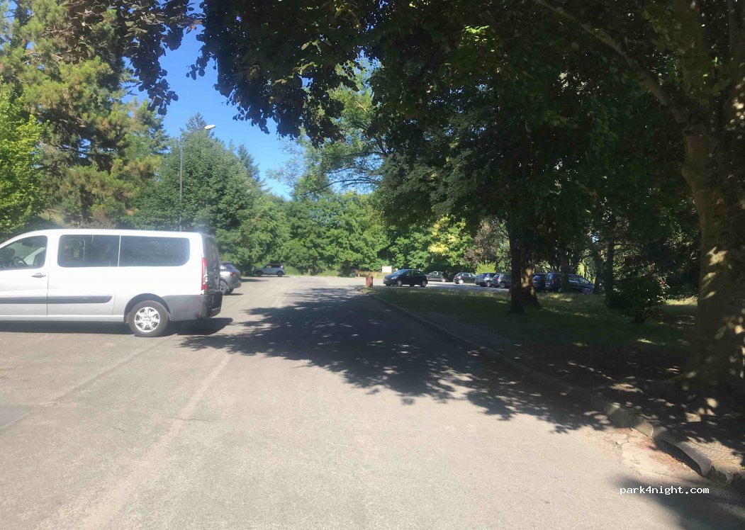 Nice quiet spot, there are concrete barriers to stop larger vehicles entering, we managed fine in a transit sized van and cars can get in fine. 1 other person staying overnight but a very quiet spot. There are no toilets on the site, maybe some next door in the park but we arrived too late to find out.