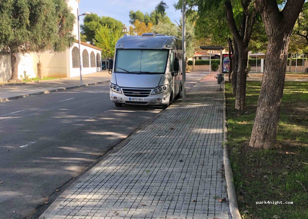 In the square, in front of the Church, there is a park where we have been able to eat in the shade. There is a public fountain. In addition you can park around and we believe that sleeping without problems too. There is no indication that prohibits the overnight stay. Beach nearby with shower and toilet.