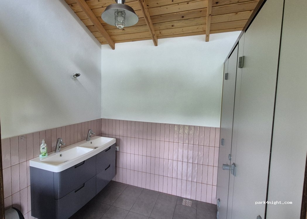 Definitly in my top-10 list of camps. Camping in the purest sense: A flat, nicely green meadow, plenty of space, views into natures, forest, mountains, very quiet. Water outlets all along the meadow. Yes, there are no showers. But in exchange, the toilets and washrooms are super clean, smell nice and the host provides you with cleaning utensiles to keep them like that.