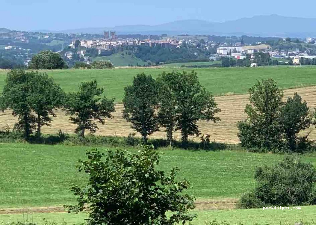 Emplacement sur terrain en herbe avec vue imprenable sur la cité médiévale de Saint-Flour et le plomb du Cantal où vous pourrez profiter de magnifiques randonnées. Le viaduc de garabit avec sa retenue d eau et la forêt de la Margeride sont à 5mm