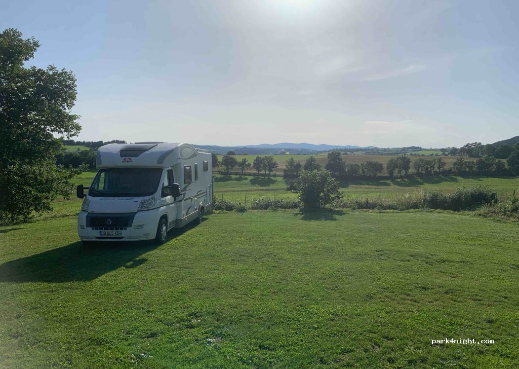 Superbe endroit au calme et en sécurité au fond d'un grand jardin. La vue est agréable et l'emplacement assez plat. Les hôtes sont très accueillants, très bien pour passer une nuit tranquille. le tout pour 5€. Station services à quelques kilomètres. Merci!