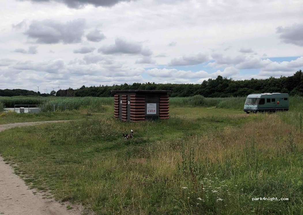Schöner Parkplatz an einer natürlichen Kläranlage von Röhricht. Der Auslaufbereich ist ein Auslaufbereich für Hunde. Hatte eine ruhige Nacht, man hört nur das Rauschen des Schilfs.