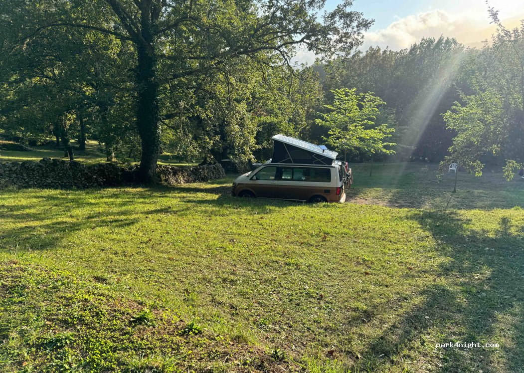 Petit coin de paradis pr se ressourcer en nature. Grands emplacements un peu ombragés, sons de la rivière en contrebas. Propre, eau chaude, wifi en haut du terrain et panneaux solaires pr recharger les batteries. A 1/2h des Pozzi. Antoine est un homme accueillant, généreux ac qui ns avons pris plaisir à parler de sujets de société. (Merci pour l'accueil, si ça part en biberine, on rapplique ;-)