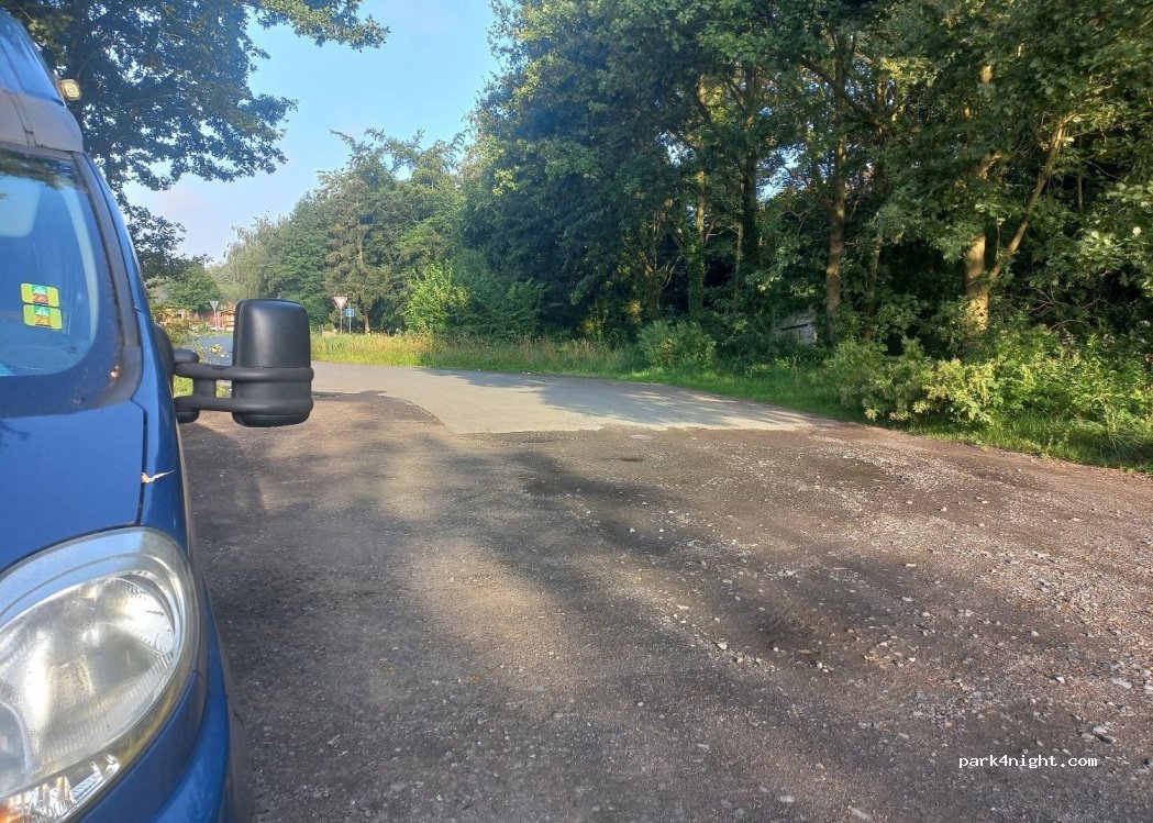 er is maar plaats voor 2 tot 3 campers. de bedoelde plek is afgesloten met paaltjes, savonds hangjongeren. maar snachts erg stil, en niet verlicht. smorgens komen mensen hun hond uitlaten ( en n praatje maken; )