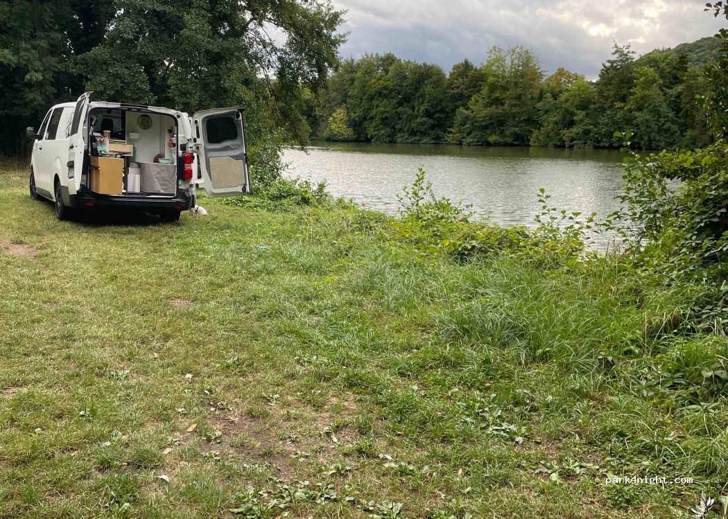 Along the Moselle 3 or 4 places possible. Road a little busy in the morning (industrial area) very quiet on weekends. Fishing possible. complicated U-turn for large vehicles, but only 50 m from the road (so reverse possible)