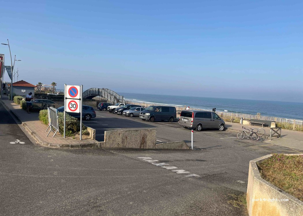Sport sympa hors-saison, nous y avons dormis un soir de semaine, sur le parking côté Skatepark et c’était parfait ! Face à l’océan, sans s’étaler, c’était top pour une nuit.