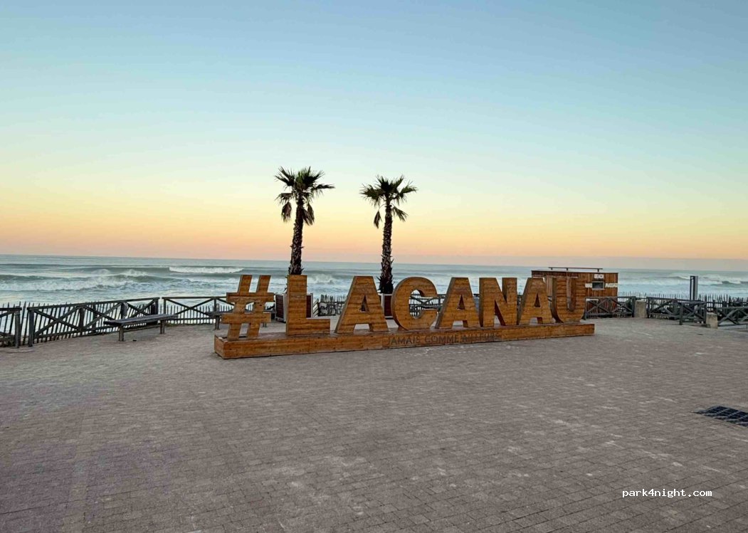 Seafront car park in Lacanau, free parking between 8 p.m. and 9 a.m., public showers on the beach accessible at perfect temperatures in summer (not cold) night spent in a 4x4 laid out in a quiet area away from the noise caused by the bars located further south I don't know if tolerated for vans, height limited to 1.9 or 2m at the entrance. breathtaking sea view in the early morning! I recommend the Beachee Coffee shop for breakfast, run by very friendly van travelers!