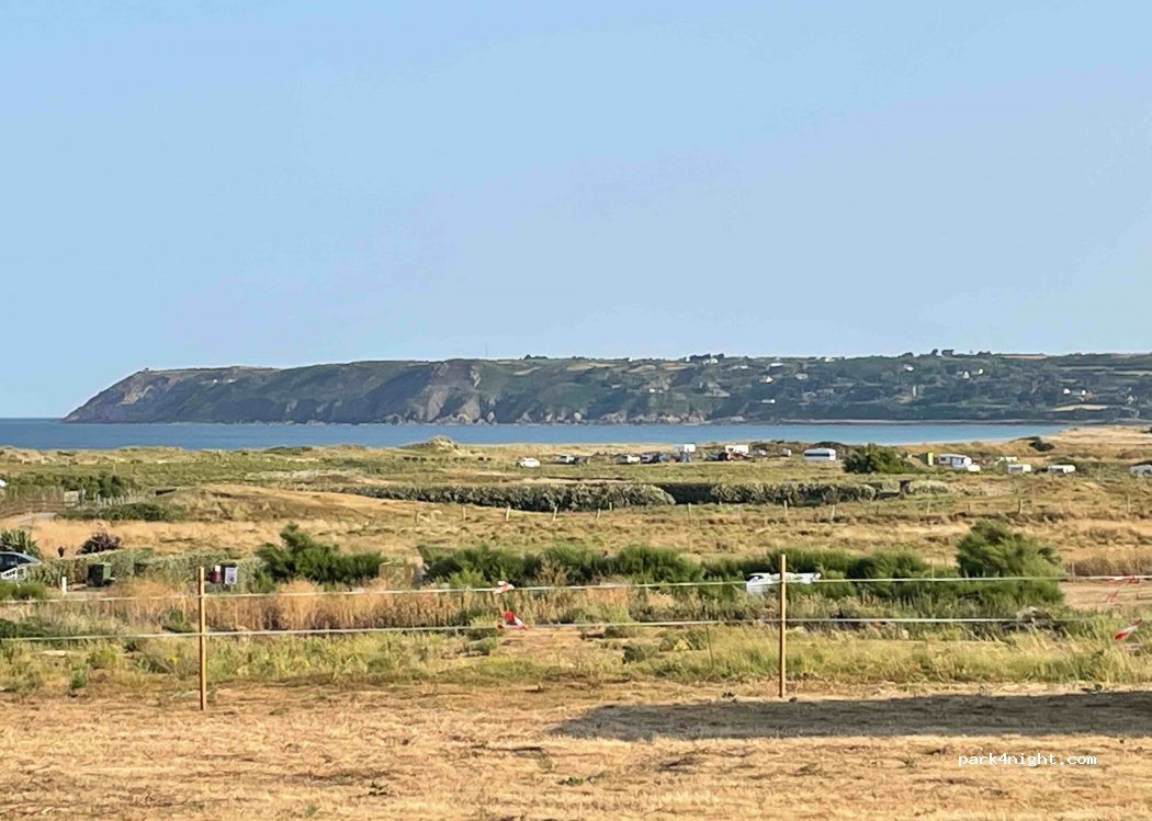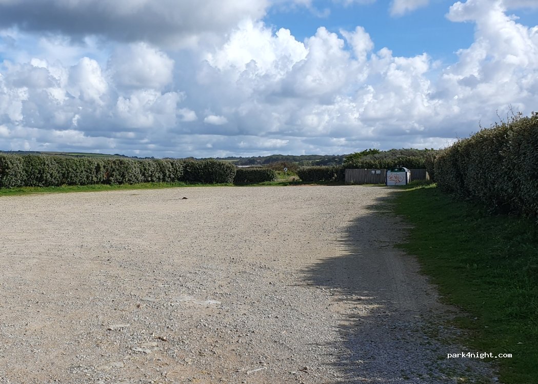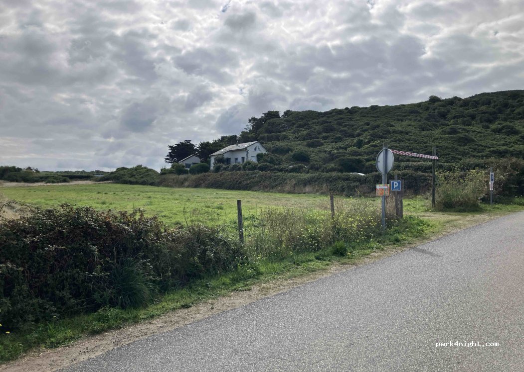 Schlichter aber großer Schotterplatz mit kleinem Picknickbereich. Müllcontainer am hinteren Ende. Kein ausdrückliches Verbot für Womos, kein ausdrückliches Übernachtungsverbot. Nur wenige Meter vom Strand entfernt. Der Panoramablick wird leider durch hohe Hecken versperrt.