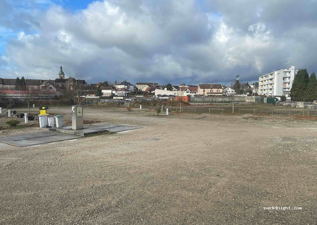 le parking est très bien situé par rapport à la ville. par contre je suis rentré dans le parking mon embrayage m'a lâché pas un seul camping cariste est venu me voir. il y a 12 camping-car de stationner.....