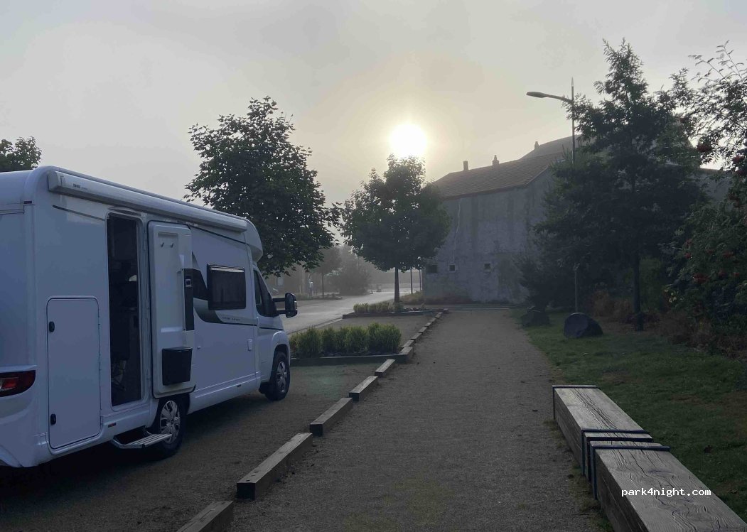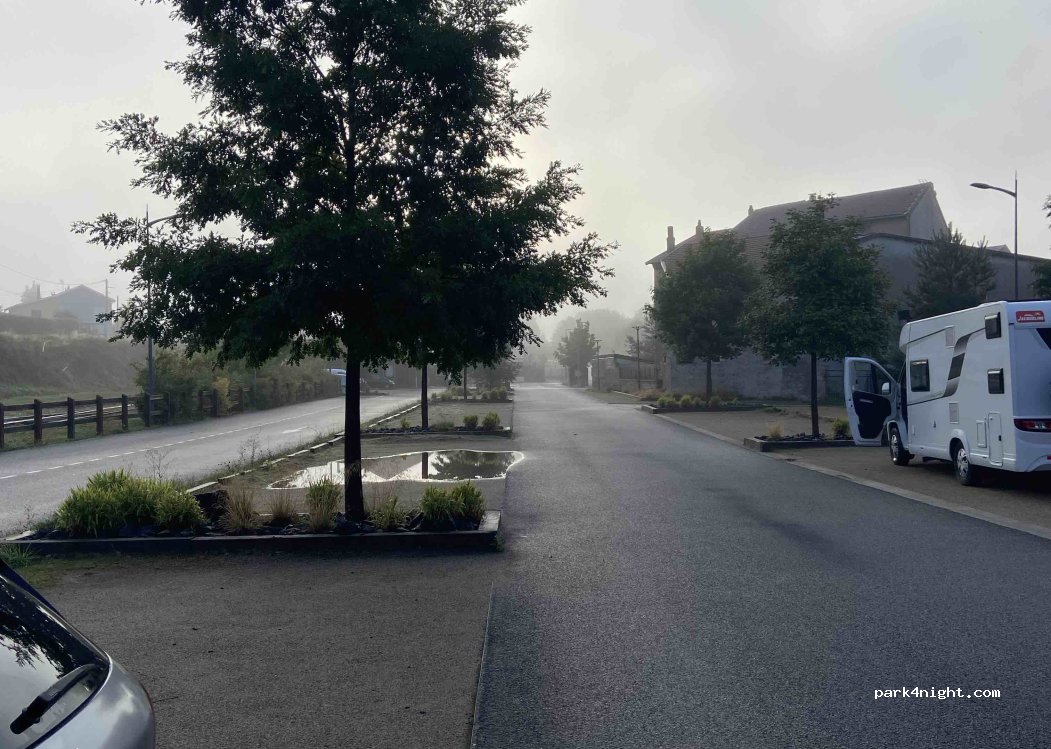 Super aménagement de plusieurs places très grandes et larges places . Près d’une voie ferrée pas de train qui est passé de toute la journée et de toute la nuit ( peut être parce que dimanche) nous y avons passé la nuit au calme . Centre ville tout proche à pied avec beaucoup de commerçants. Merci à la commune pour cet emplacement pas toujours évident pres des centres villes .