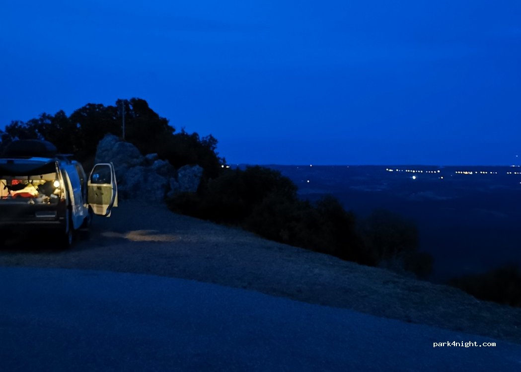 Wederom n prachtige plek. Schoon, schitterend uitzicht, en in de nacht geen enkel verkeer. Verder n enkele wandelaar en n local die ook van 't uitzicht wilde genieten. Super rustig. 't Toilet achter de kapel is dicht gemaakt, en 't water punt is afgesloten. Verder TOP! Let op: het is best n steile klim naar boven met scherpe bochten. Voor n camper(van) langer dan 5,5 / 6 meter zeer lastig te doen.