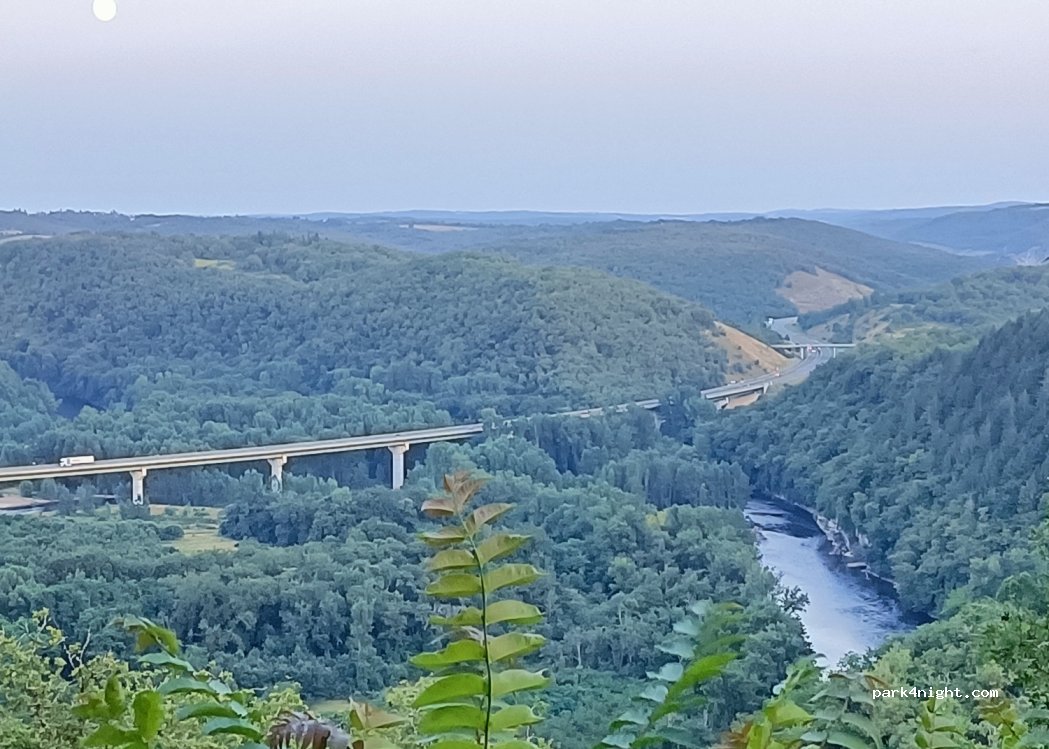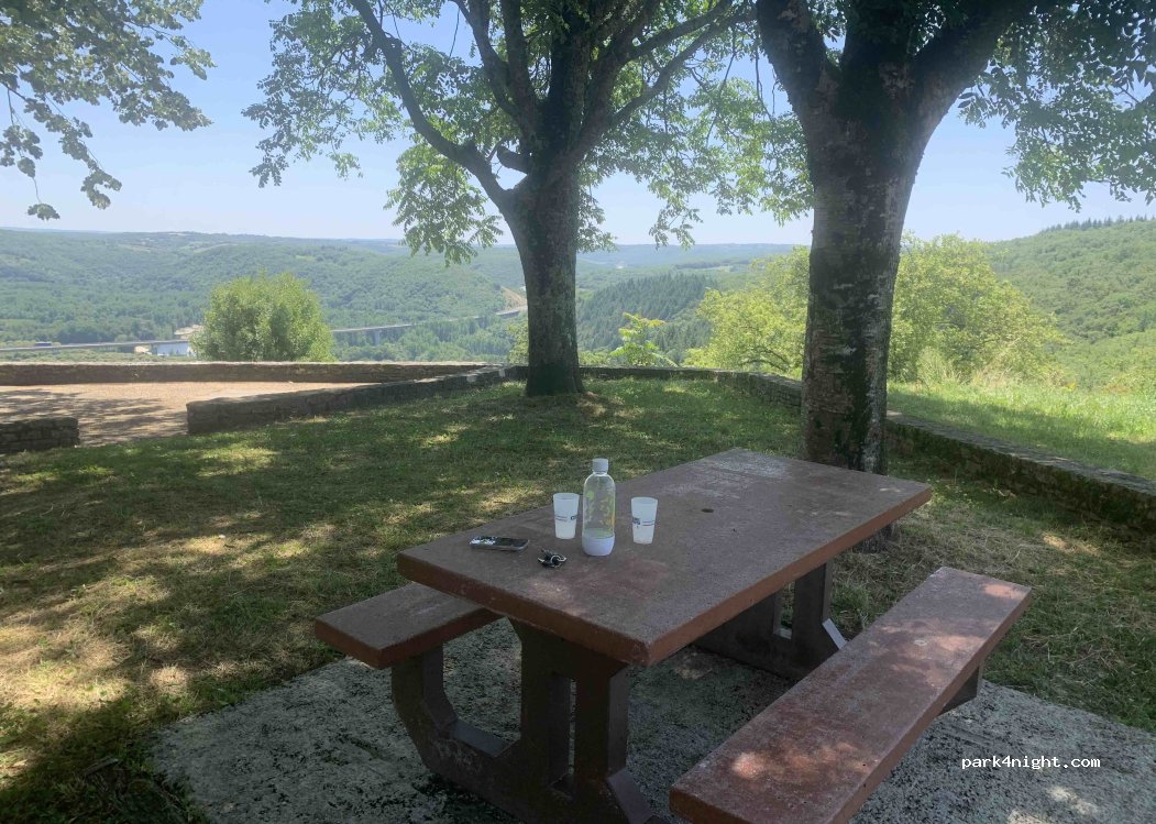 Aire de pique-nique mais aussi possibilité de passer la nuit. Discret, en bordure de la RN20, dominant l'autoroute et la Dordogne, l'endroit très agréable et bien ombragé est équipé de tables.