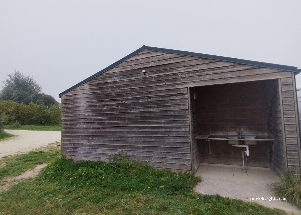 Une petite aire en dehors des villes comme on les aime. A l'abri du grand vent. Électricité, douche et toilettes spacieuses avec de l'eau bien chaude. Le tout pour 6 €. On a envie de garder cette adresse rien que pour soi. Un grand merci aux bénévoles pour leur accueil de qualité. PS : paiement en espèces à la personne qui passe le soir. Pas de DAB au village. L'épicerie est fermée le lundi