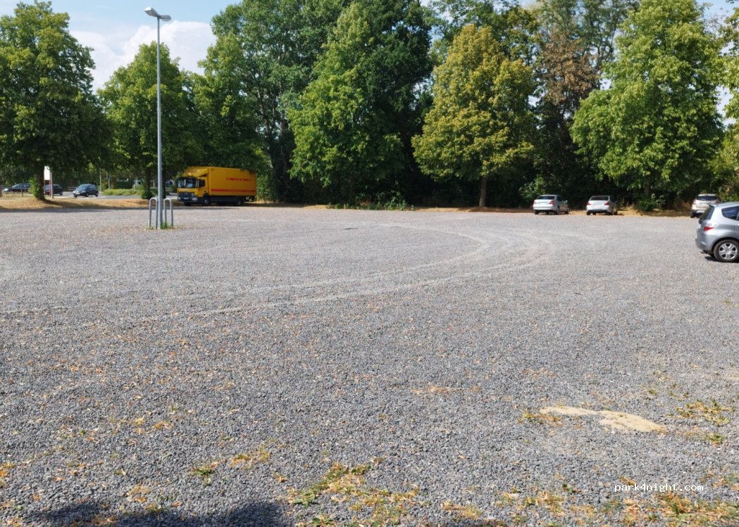 Stationnement gratuit sur gravier... Idéal pour les nuitées, même pour plusieurs jours. Piscine couverte à proximité (200m).