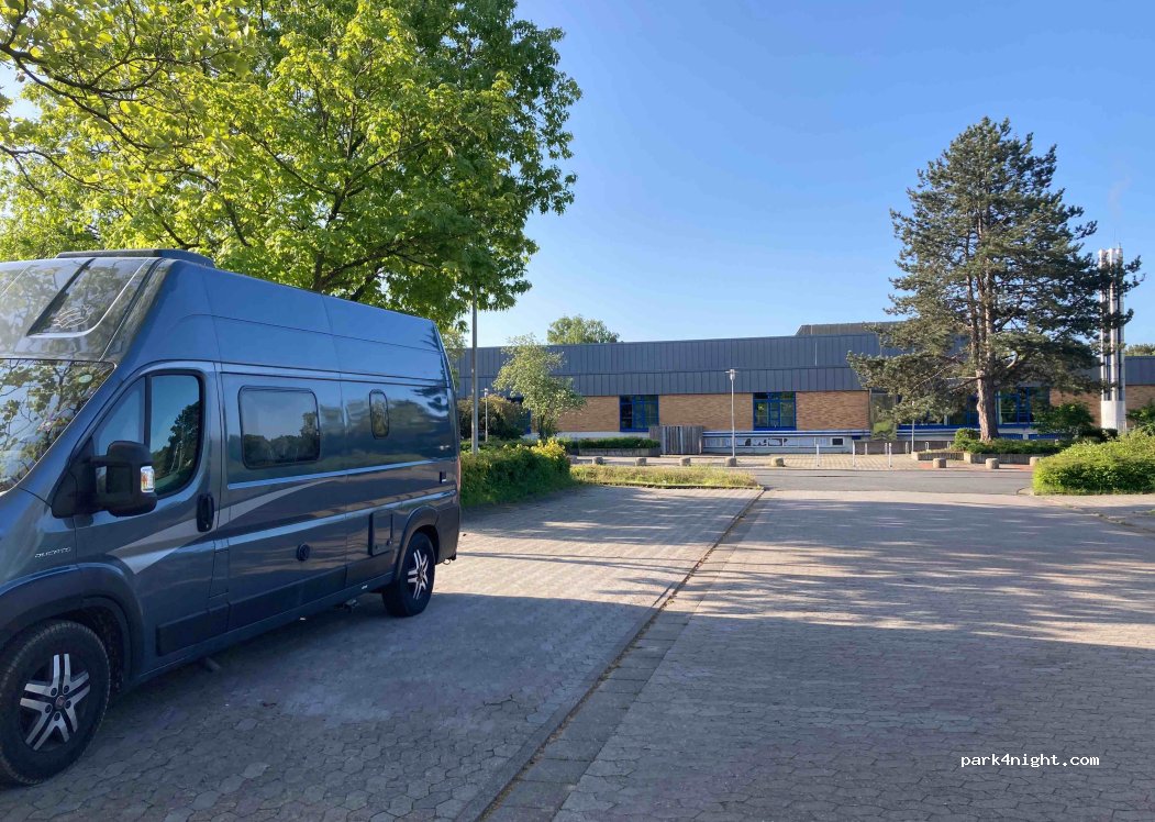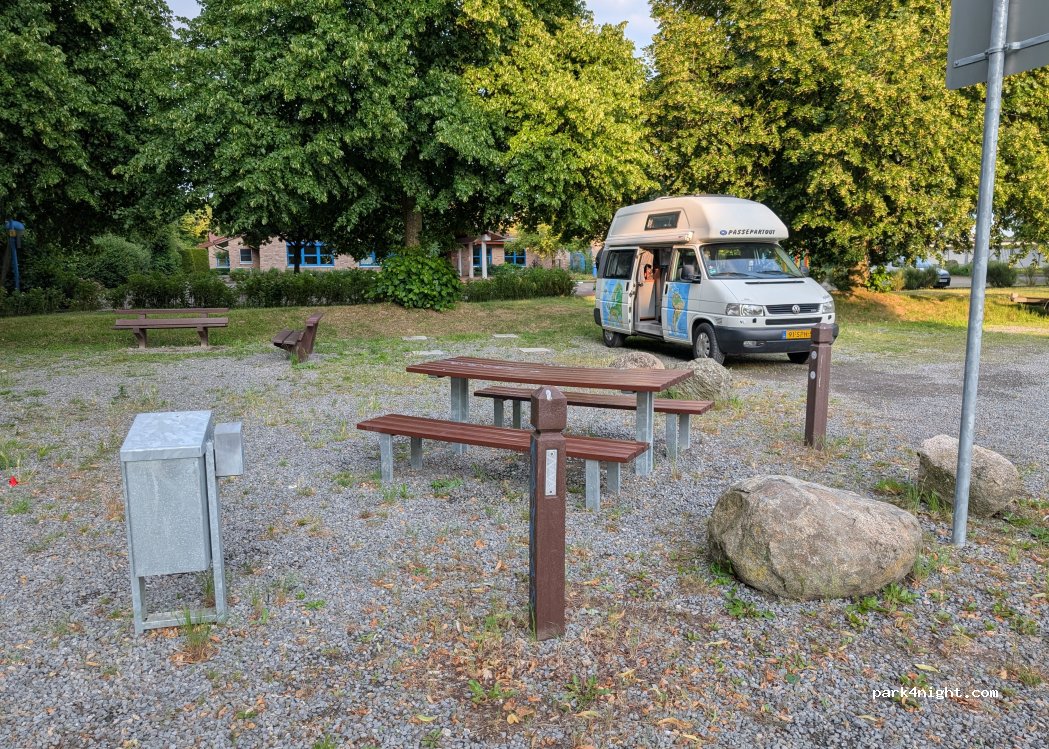Free parking lot on gravel... Great for overnight stays, even for several days. Indoor pool nearby (200m).