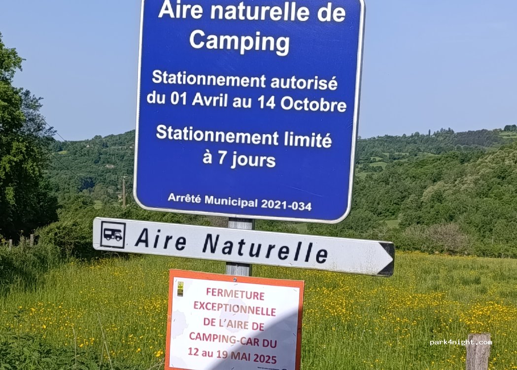Superbe aire naturelle avec des espaces verts Merci à la commune pour cette espace gratuite et bucolique avec une vue sur les vallons . l aire sera fermée du 12 au 19 mai 2025