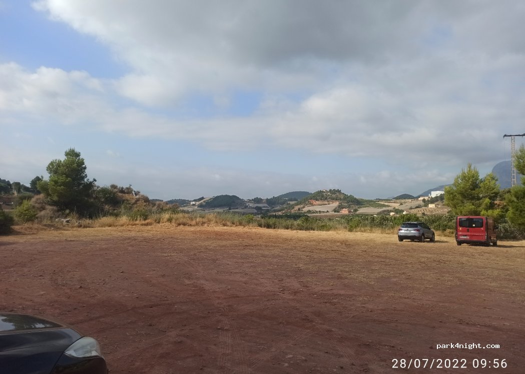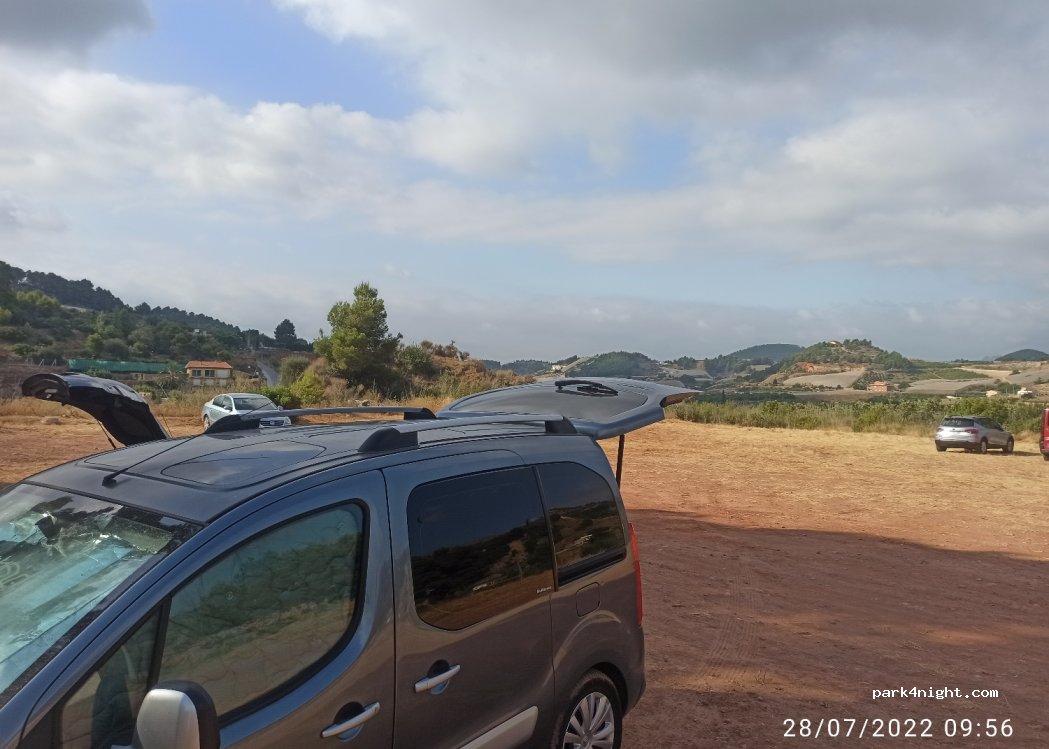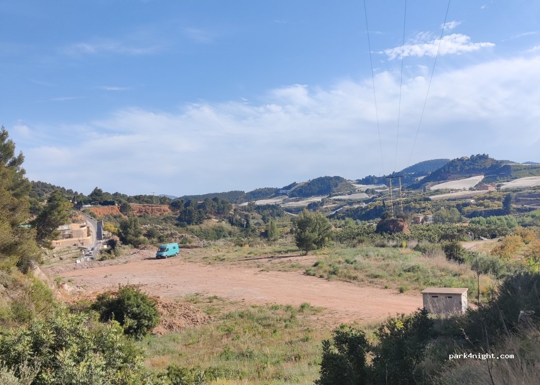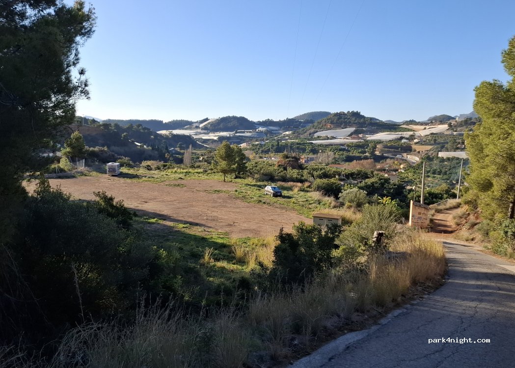 Es un descampado, con buenas vistas. Camino estrecho de doble sentido con fuerte pendiente.