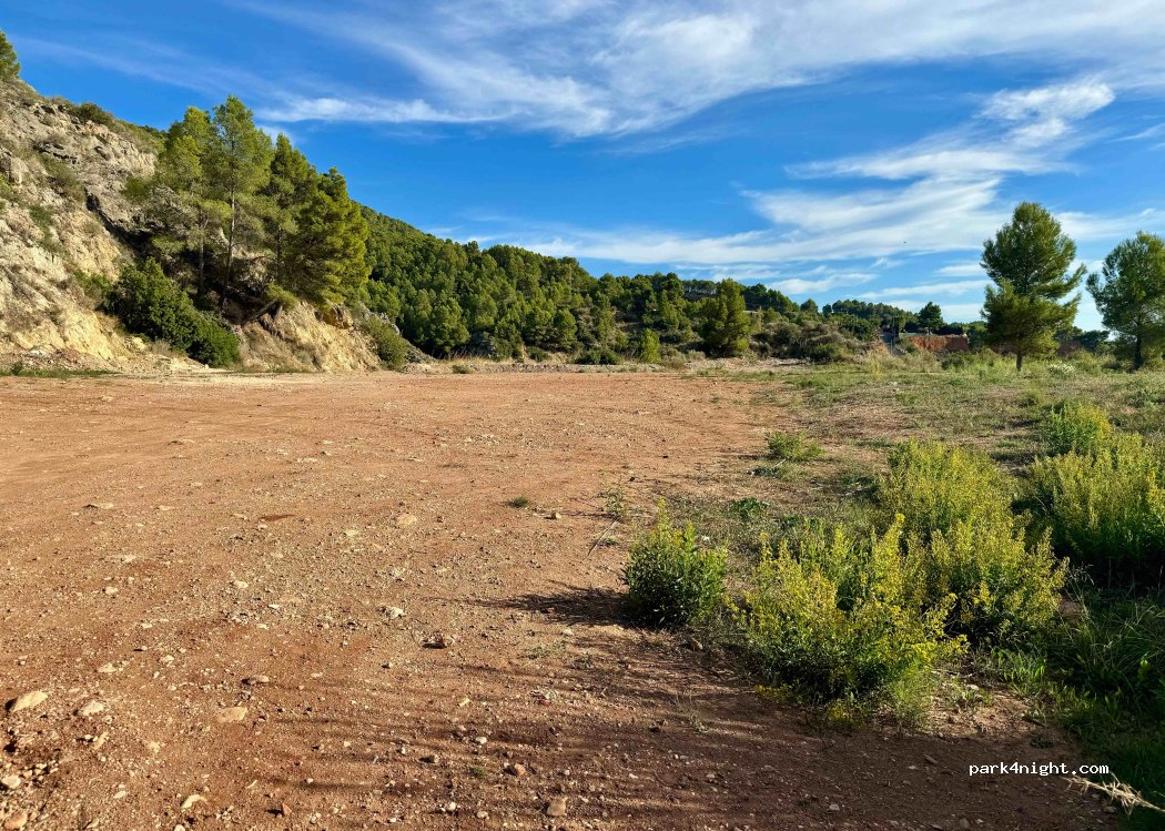 he pasado la noche solo y descansado muy bien. El camino de acceso tiene una fuerte pendiente, he tenido que subir en primera, me preocupa encontrar un vehículo de frente, difícil maniobrar. Sugiero visitar la cascada Bolulla, es lo mejor de la zona y gratis. Hay parking gratis en la oficina de turismo. Si volviera por aqui yo evitaría subir a este descampado.
