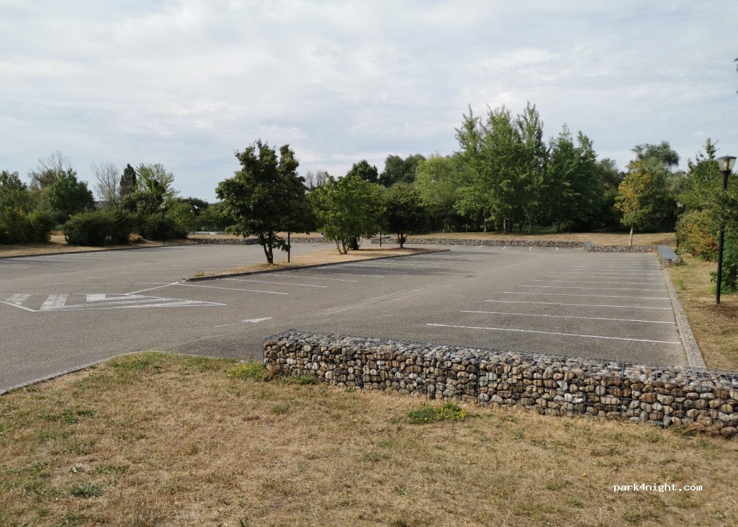 Arrivée tardive vers minuit un samedi soir. Parking vide, plat, éclairé, seulement 2 voitures de jeunes mais pas de bruit. Nuit calme. parfait pour une nuit de transit.