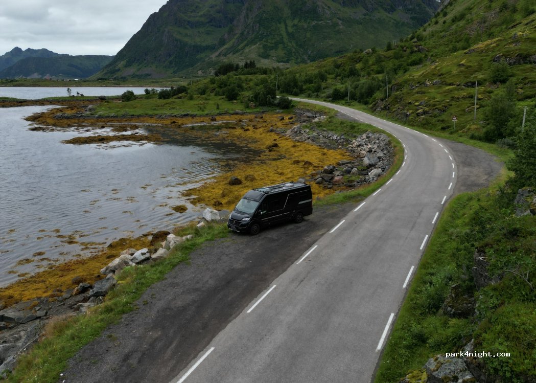 très bon emplacement, quasi plat. Calme la nuit. très belle vue avec le passage de l'Hurtigruten à l'horizon. par contre réveil matin agréable avec les moutons qui passent.